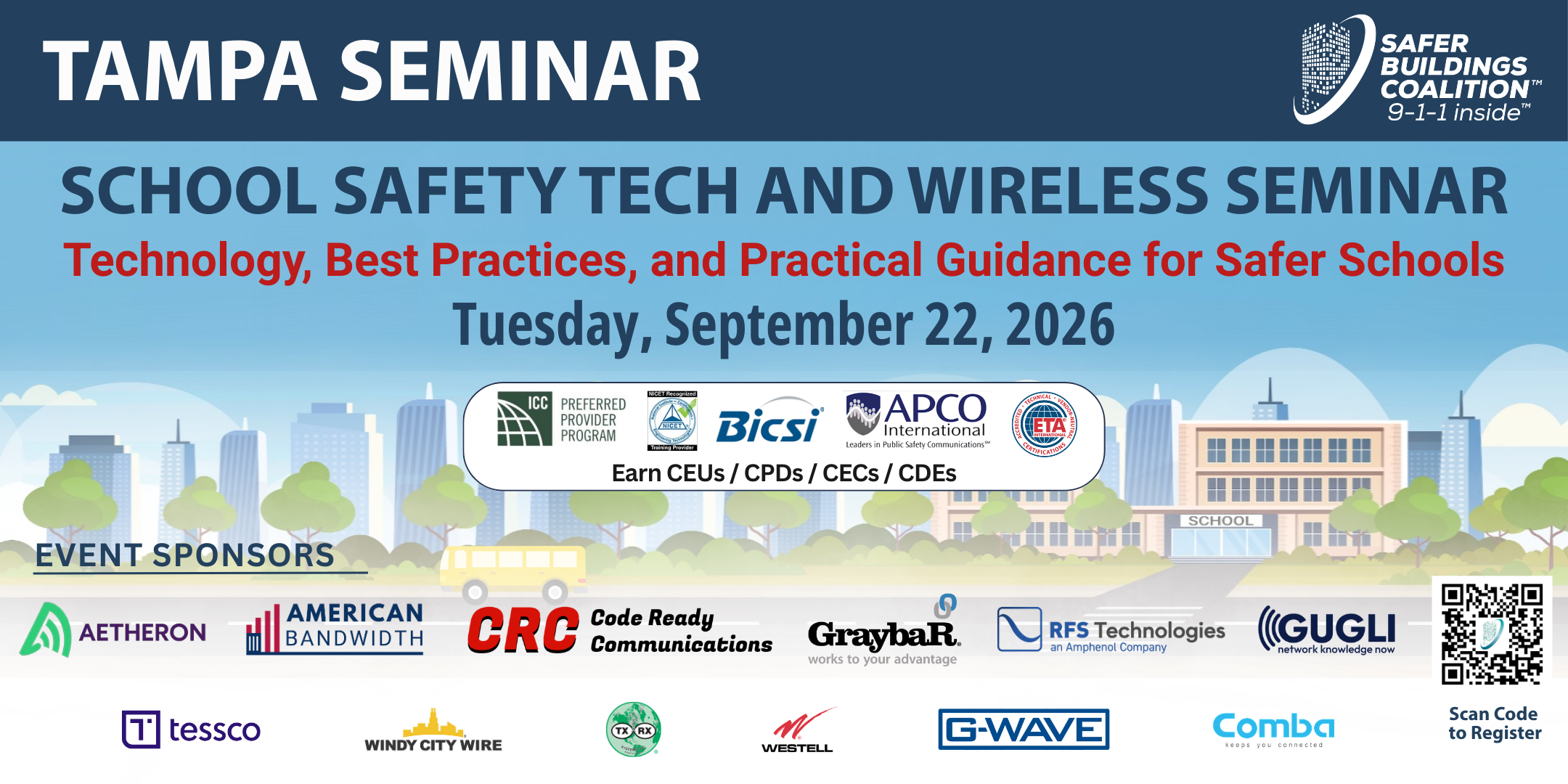 Designed for school safety leaders, IT teams, public safety professionals, and partners—focused on practical, integrated safety and emergency communications. Covers Alyssa’s Law/PASS guidelines, panic alert and dispatch integration, mapping/geolocation, and in-building wireless (ERCES, cellular, Wi-Fi/private networks). Education-focused with panels and takeaways, plus vendor exhibits and lunch; most registrations are free (non-member industry: $195, 2 seats/company).